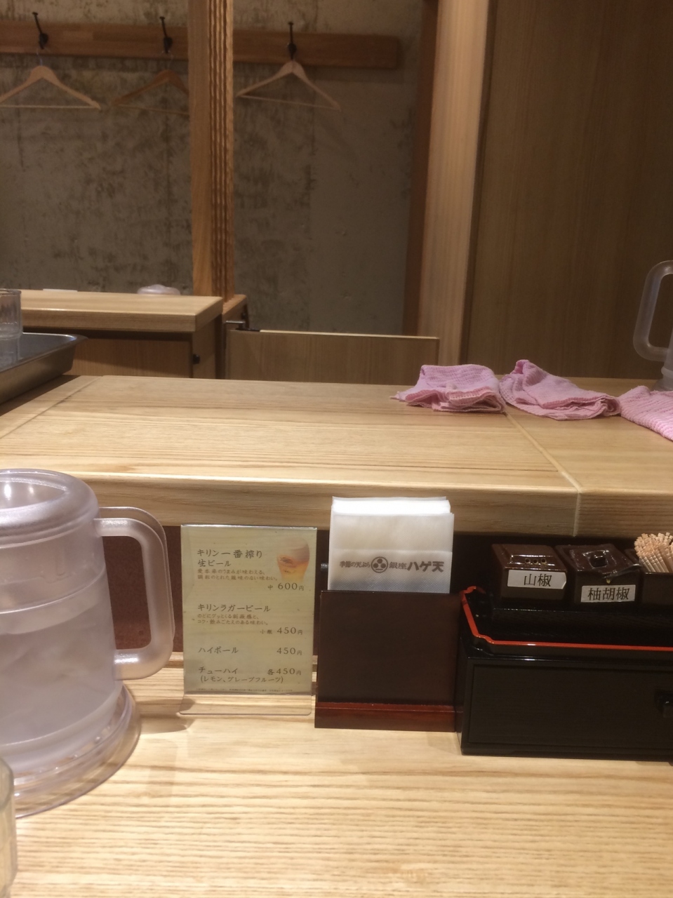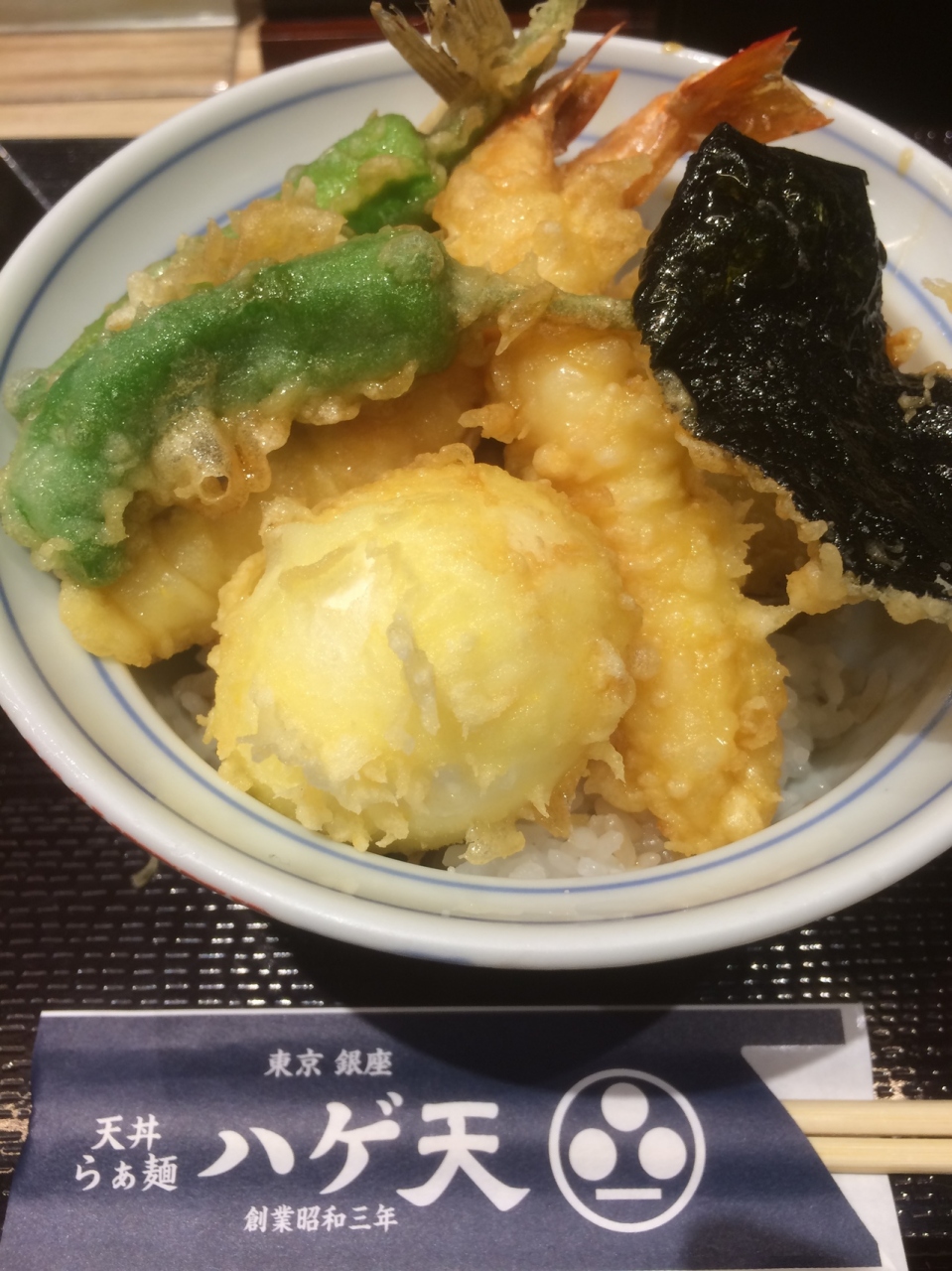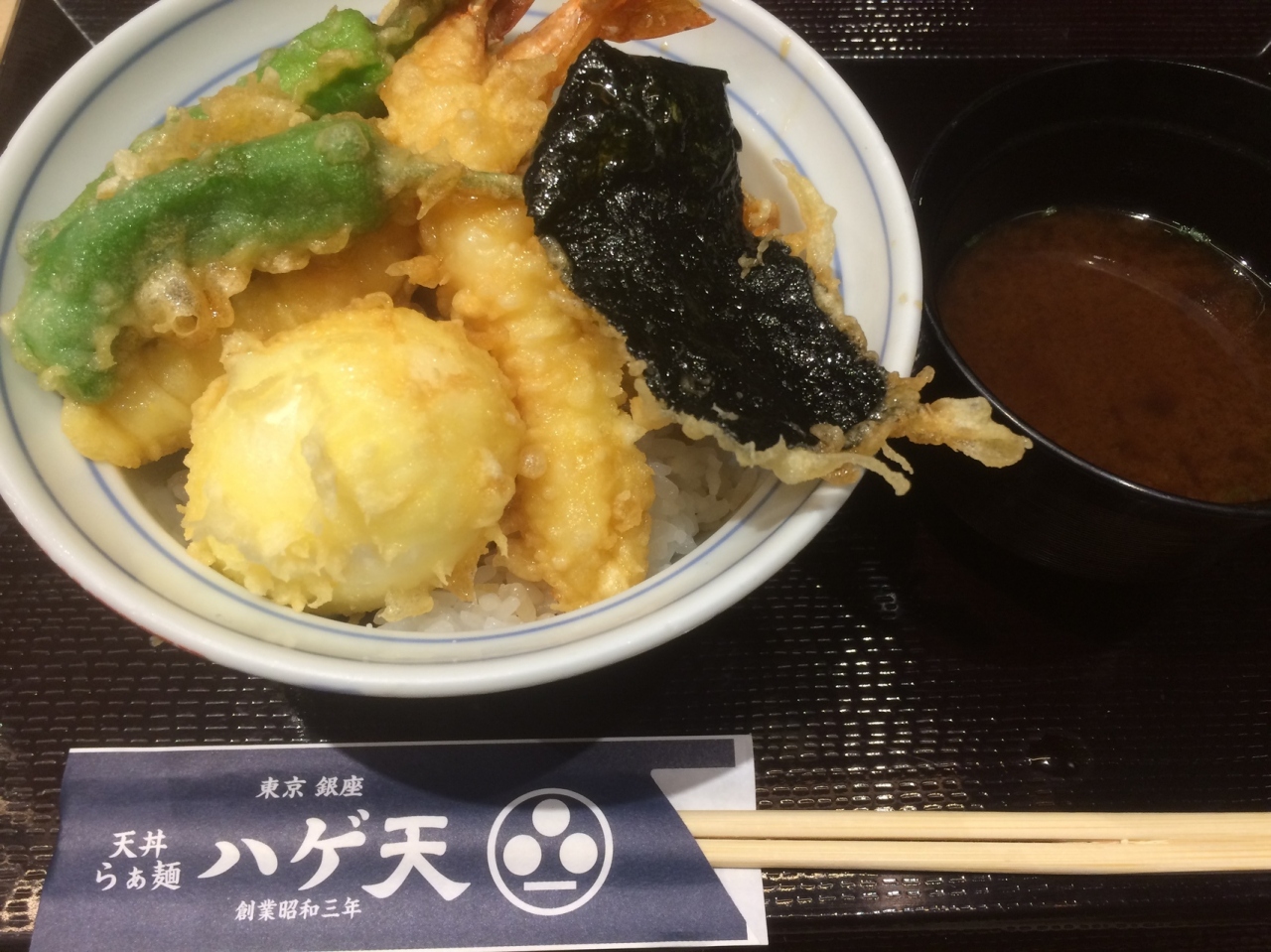 外から店内が見え、おしゃれで高級感があったので訪問。店内に入るとすぐに自動食券機が一つありました。コの字型のカウンター席で外国人のお客さんが半分ぐらいいました。15分ほどして天丼が出てき、味噌汁が赤だしのしじみ汁でしたが、こちらは味は普通うでした。天丼のごはんは少なめで、細い海老が2匹のっていて、その他数種の具があり上品な味、ごはんにタレもかかり程よい味でした。