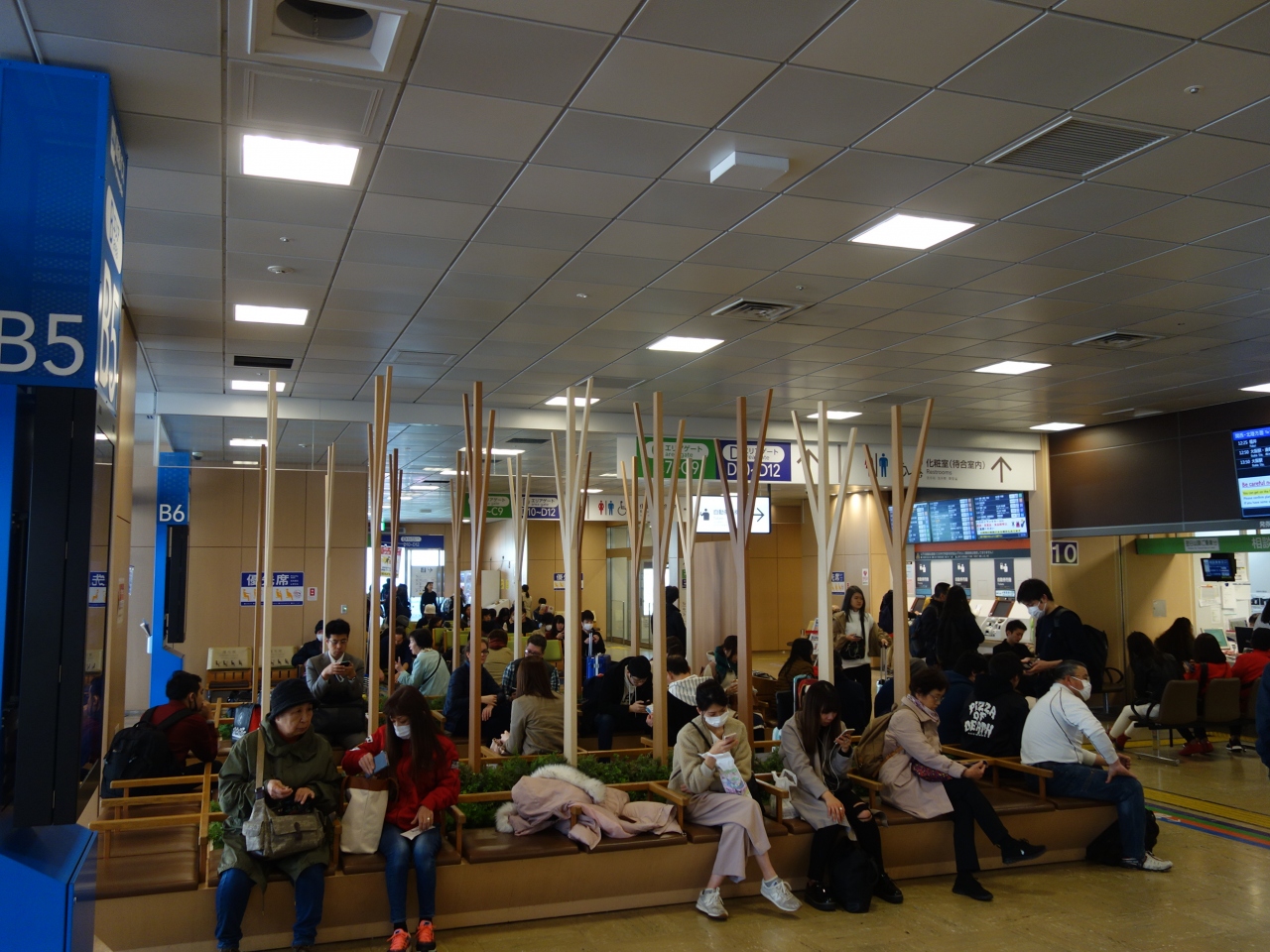 新宿バスタから発着する高速バスの便の多さに驚きます。空港線は影が薄い。全国の都市へ高速バスが走っているのがここに来るとよくわかります。日本中に高速道路が整備されたおかげです。(逆に言うと,鉄道行政がないがしろにされた。)