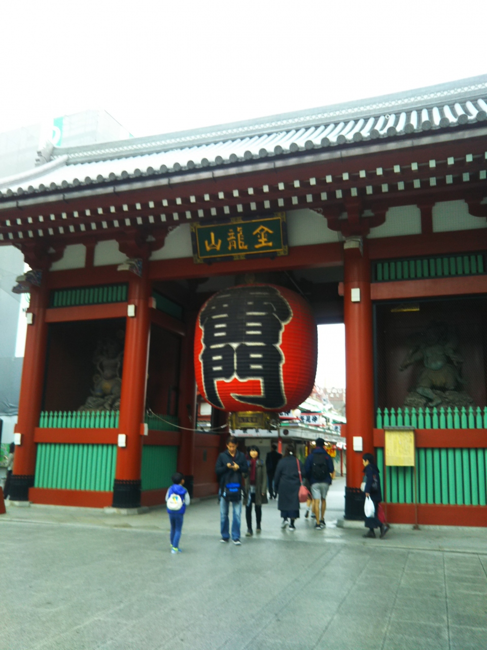 東京の人気観光スポット浅草の必見スポットです。浅草寺へ行くための門で朱色の大きな門に大きな立派な提灯が目立ちます。左右には風神と雷神の像もあり、荘厳な感じです。撮影スポットでにぎわっていますが、9時頃は空いていました