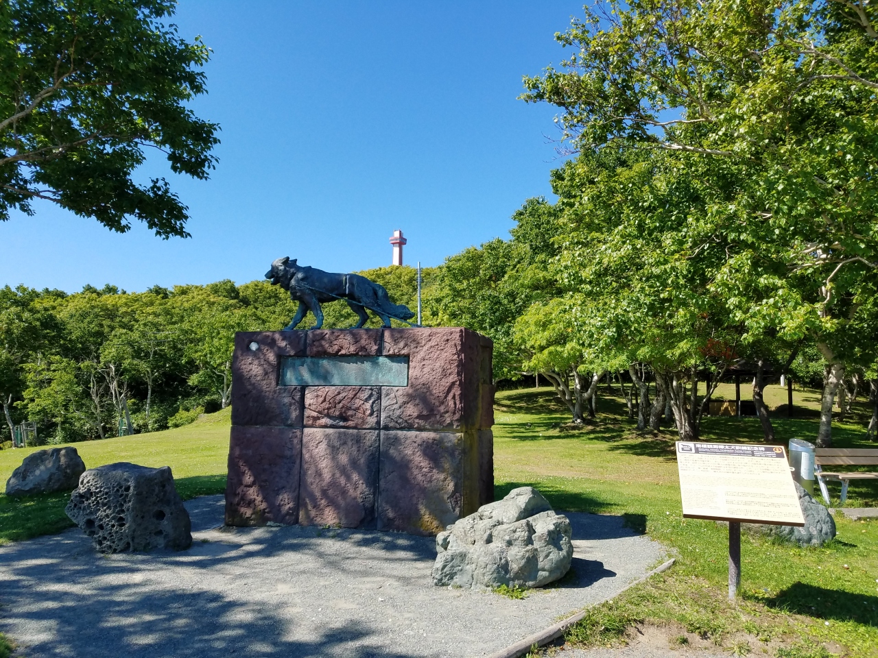 昭和30年代初頭の南極観測に同行した樺太犬はこの場所で訓練されたそうです。現地に取り残され亡くなった犬たちと生き残ったタロ、ジロの話は「南極物語」として映画化されあまりにも有名です。ゆかりがあるとは知らず、堂々と逞しくソリを引く姿の像を見て映画を思い出しました。
