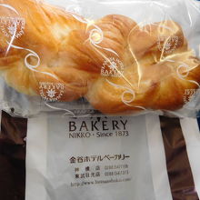 神橋バス停のすぐ近くにある、金谷ホテルベーカリーのお店です。行きのバスの車内からお店が見え、気になっていたので、帰り道で寄ってみました。お店は狭く、細長い通路に沿ってパンが一つ一つビニール袋に入った状態で並んでいました。気になったパンを1つだけ買ってみましたが、店員さんは笑顔で親切に対応して頂けました。帰りの車内で食べてみた所、とても美味しかったです。