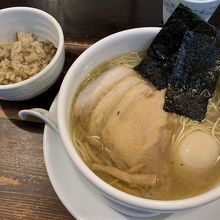 某ログ百名店で塩らーめんが人気のお店。開店10分前に並んで一巡目で入れました。"塩らーめん全部のせ"を注文。スープはしっかりした塩味が効いたあっさり味で魚介系の香りとコクが良い。フルスイングで湯切りしたストレート細麺は伸びにくくスープに良く絡み最後まで楽しめました。他のメニューも試したい。