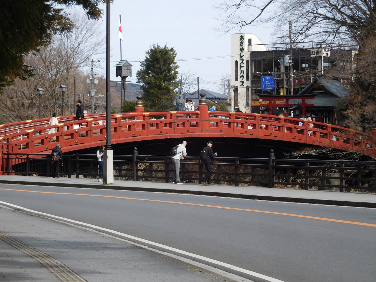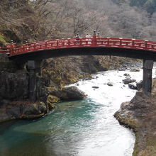 大谷川に架かる鮮やかな朱色が印象的な橋で、昔、神によって架けられたと伝えられているようです。世界文化遺産にもなっていて、橋を渡る場合は、渡橋券を購入する必要があります。橋の上では、着物姿の観光客が記念撮影をしていました。少し離れた場所から川と山を背景に写真を撮るだけでも十分に思いました。