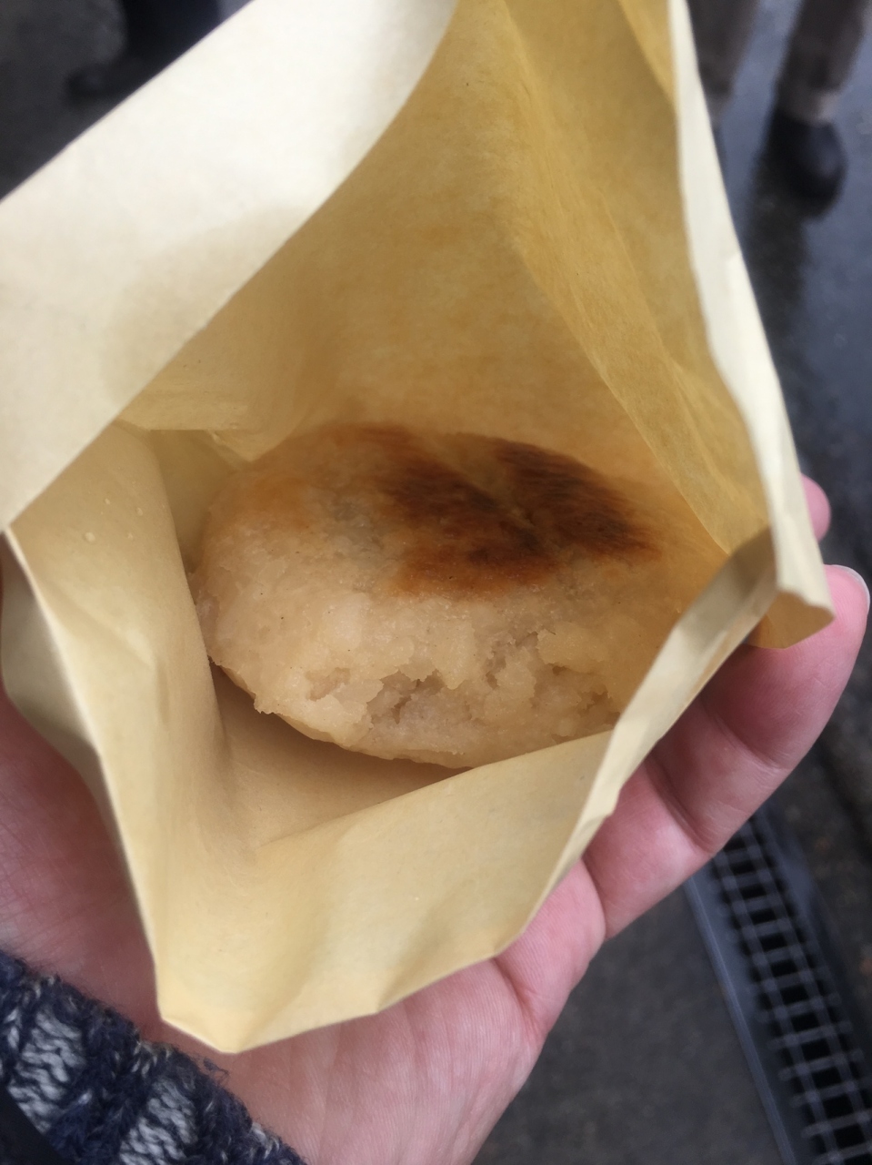 で、連れは、おやきを買ってたんですが、それがまたうまそう!こちらも、追加で購入しました。なんとなく味噌が効いてて、予想以上においしかったです。