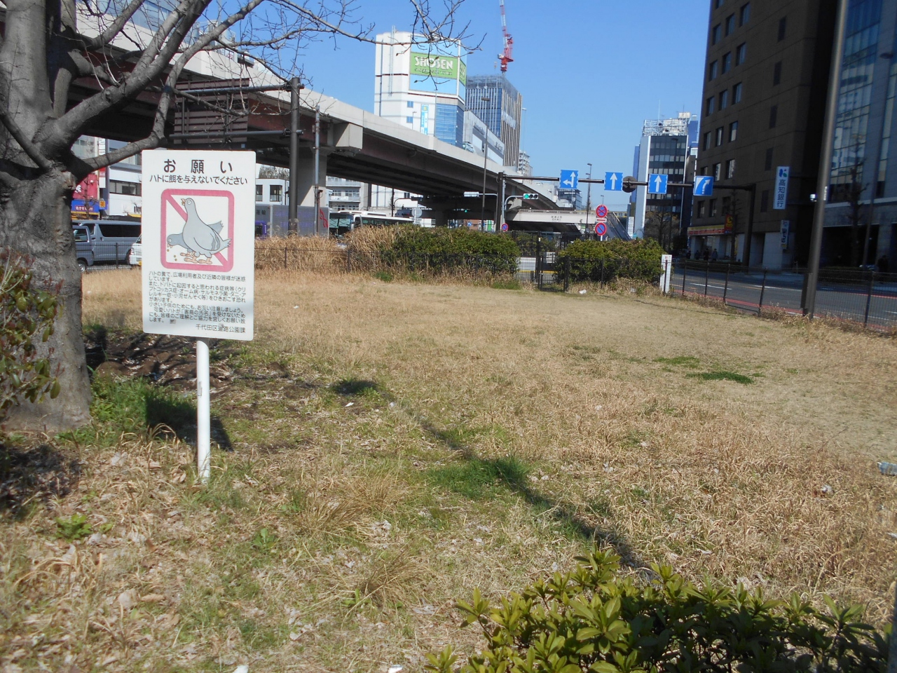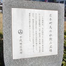 靖国通りと昭和通りの交わるところで岩本町の交差点のところにちょっとした空地と案内板があるのみです。
