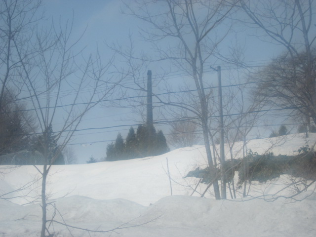 夕張の炭鉱で栄えた歴史を今に伝える、ランドマーク的な存在の煙突で、今までも夕張支線に乗ってこれを見る度に、夕張に来たなという気持ちになったものですが、今回は、支線廃止の約10日前に訪問して、車窓からの眺めの惜別をしてまいりました。