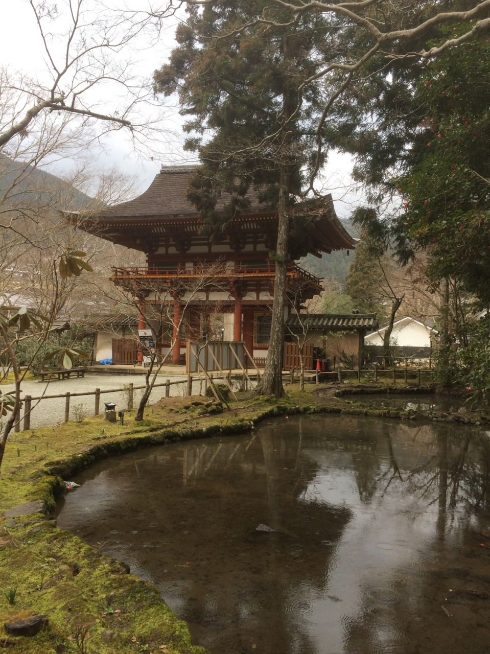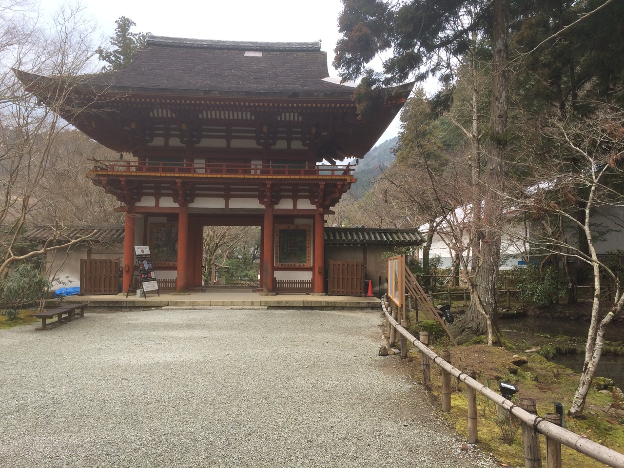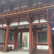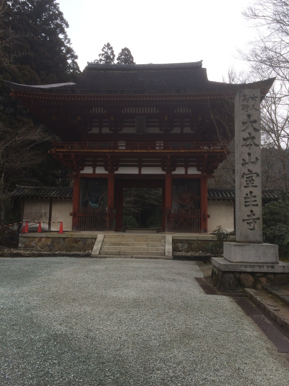 門の左右には、左に青い仁王像、右に赤い仁王像が睨みつけていました。門の左右は白い壁になっていて潜って裏側の左右を見ると、室生寺の絵が描かれていました。どっしりとした正方形ぽい形の門で、大きく迫力があるので、室生寺が大きな寺だと実感しました。
