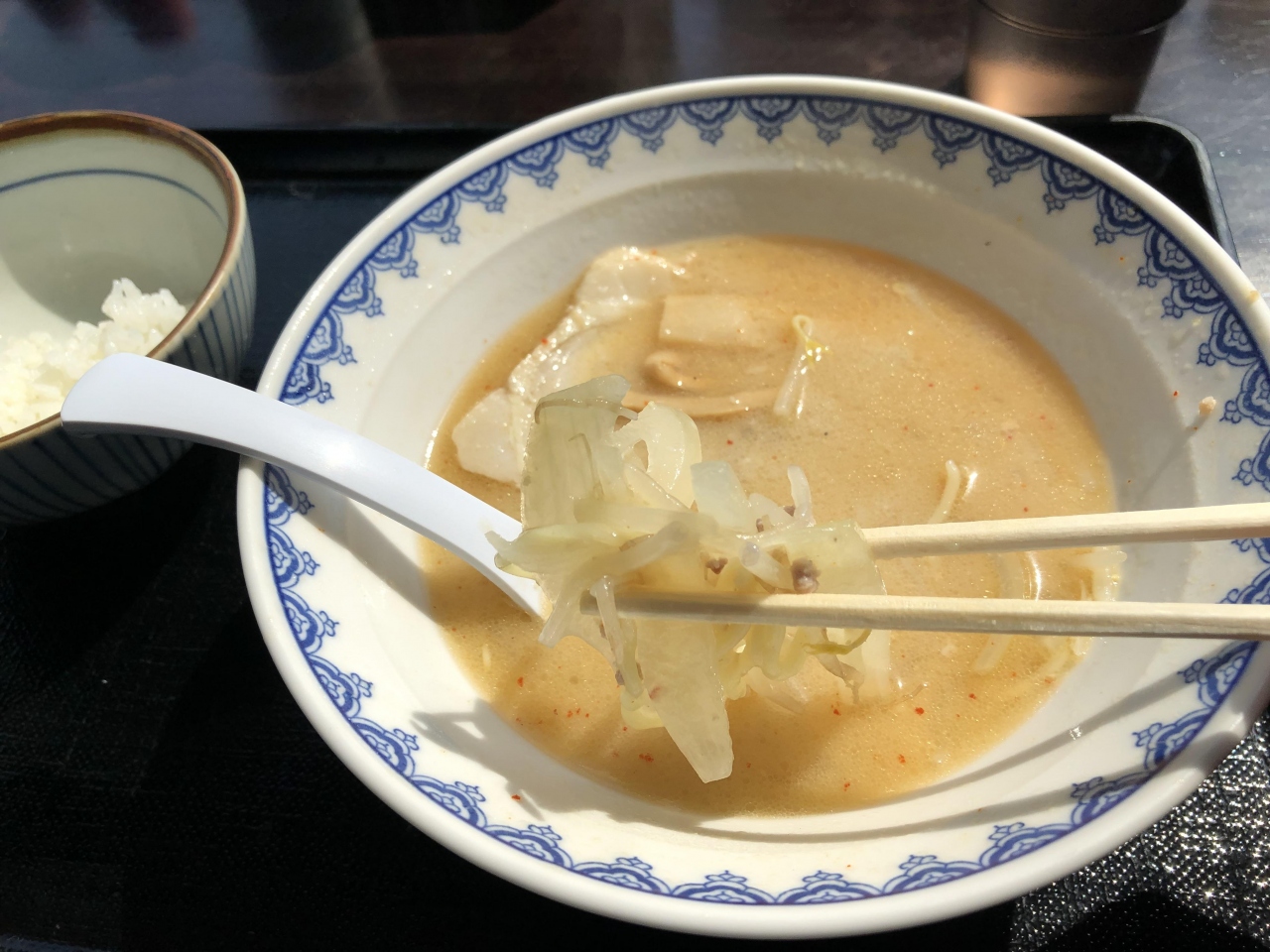 半玉なので麺はすぐになくなりますが、味噌野菜スープと白いご飯の相性が抜群でした。