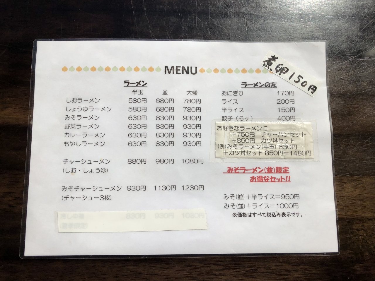 次回は「味噌ラーメン」の並みと「おにぎり」を注文予定です。