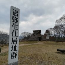 岡山県津山陸上競技場の近く、駐車場もあります。芝生がきれいに敷かれベンチもたくさんある公園に弥生式の住居と高床式倉庫が1棟づつ復元展示されています。住居跡、倉庫跡ははっきりとはわかりませんでしたが、ちょっとした高台にあり津山市北部の町並みがよく見えました。