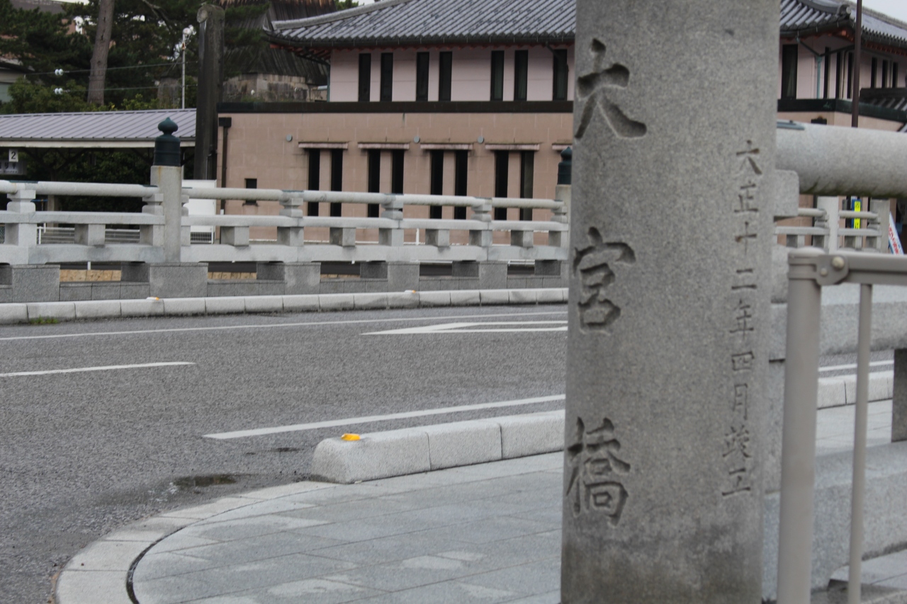 香川県の観光名所であるこんぴらさんへむかう参道にかかる駅からの橋です。作りなおされたきれいな橋ですが、昔のままの面影をのこしている貴重な橋である。橋げたは石組みでつくられていて、めずらしく、みどろのひとつです。