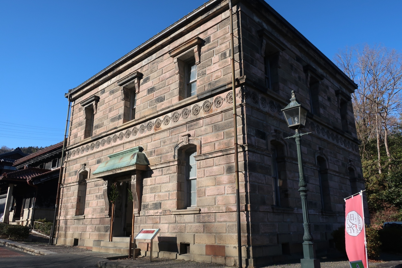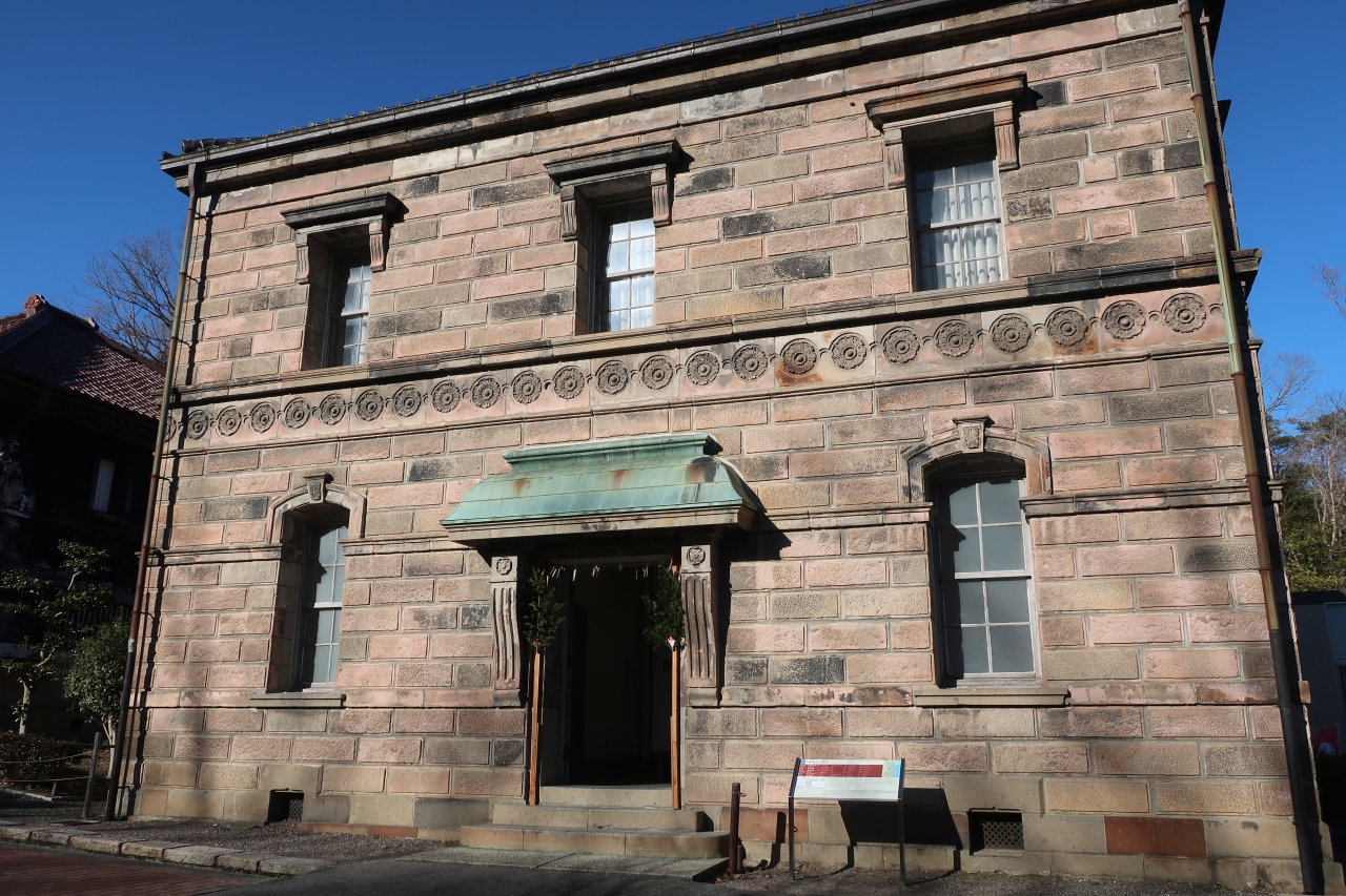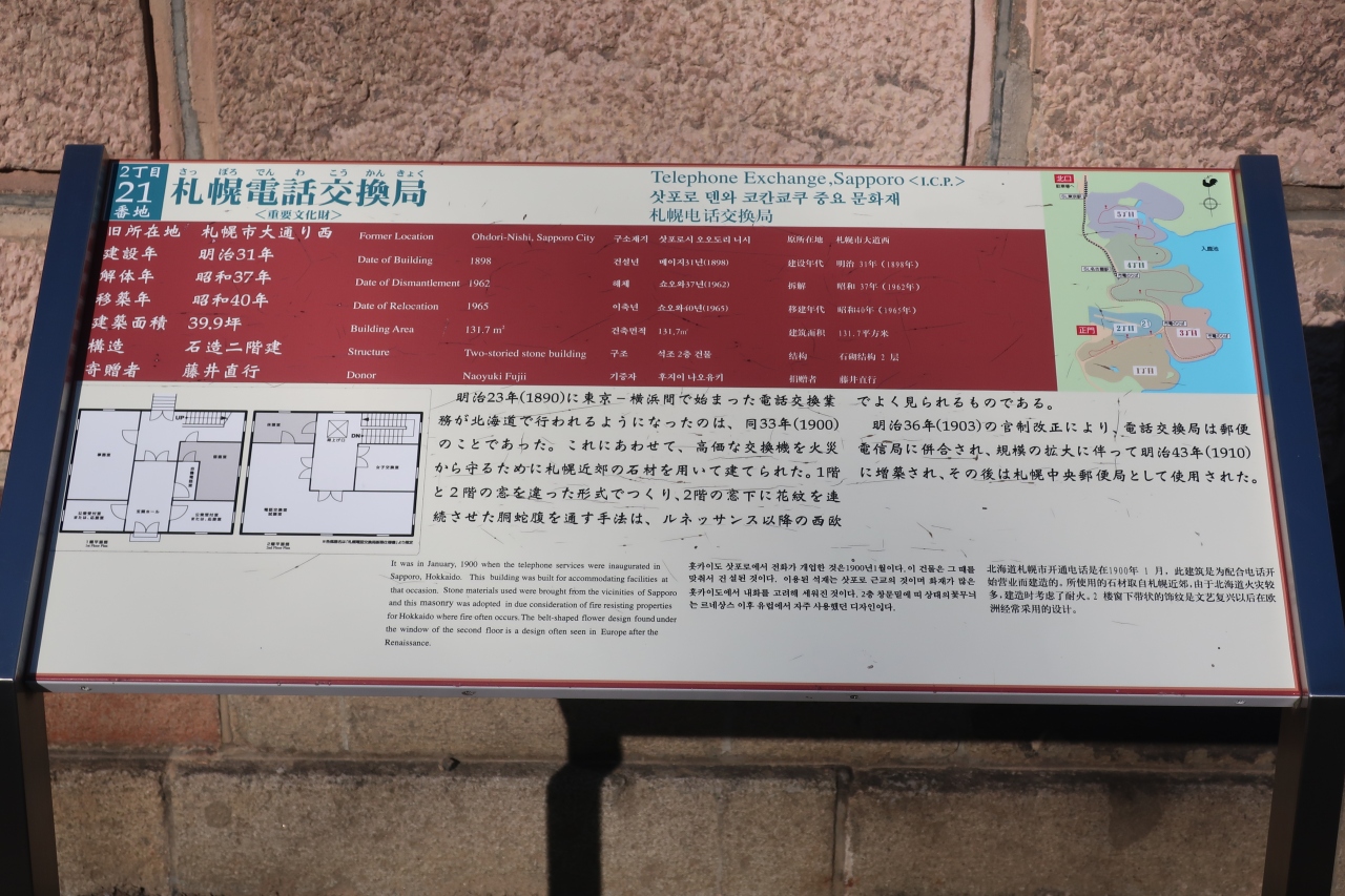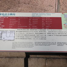 明治村2丁目のメインストリートであるレンガ通りの東端にある2階建て石造りの建物が札幌電話交換局です。札幌市大通りに明治31年に建てられた建物の2階下には胴蛇腹花紋と呼ばれる模様が刻まれ、窓の石の厚さには驚かされます。内部では電話交換の仕組みや当時の交換機が展示されており、当時の大変さが分かる展示になっています。