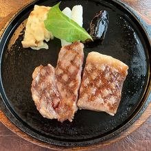 ソースやお塩もサーブされました。最初の一切れはそのままで、、と、教えて頂きました。美味しいステーキでした!一人前が8000円ほどのコースにしましたが、思い出のステーキになりました!