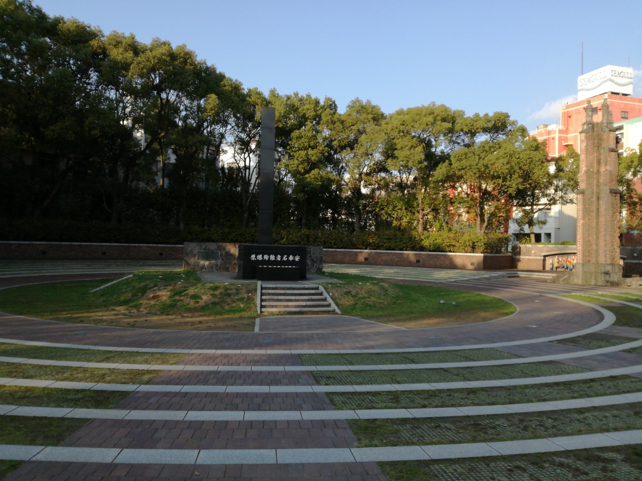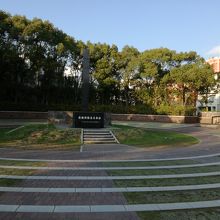 爆心から500mにあって、爆風で破壊された浦上天主堂の構造の一部が平和公園内に移設されていました。場所としては、原爆死没者名奉安のすぐ横にあり、死没者のご冥福を祈るかのように最上部に石像が立っていました。