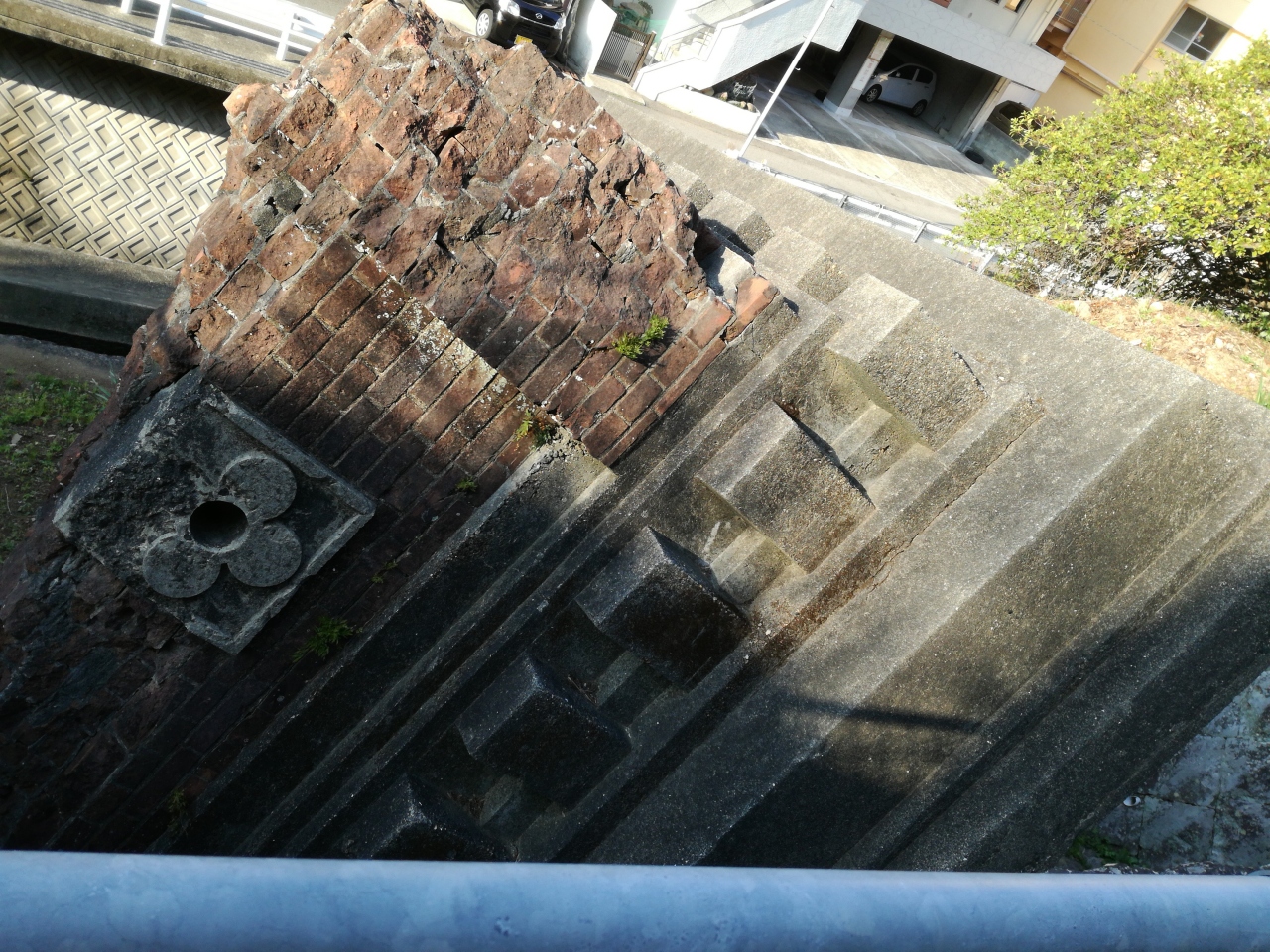 長崎被爆の際、吹き飛ばれた浦上天主堂のレンガ造りの双塔のドーム状鐘楼の一つが、崩壊したままの姿で保存されていて、被爆の恐ろしさを後世に伝えていました。保存のために、わざわざ川の流れを変えたとのことでした。