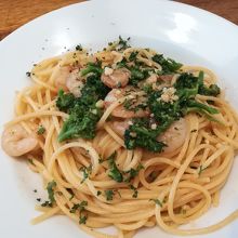 12時オープンで入りましたが、続々とお客かんがやってきて人気のお店でした。ランチは組み合わせる仕組みで、私はパスタ、サラダ、コーヒー、ティラミスのセットを注文して1250円でした。麺がプリプリとコシがあり味も美味しかったです。ただし、ホールが一人しかおらず提供に時間がかかります。