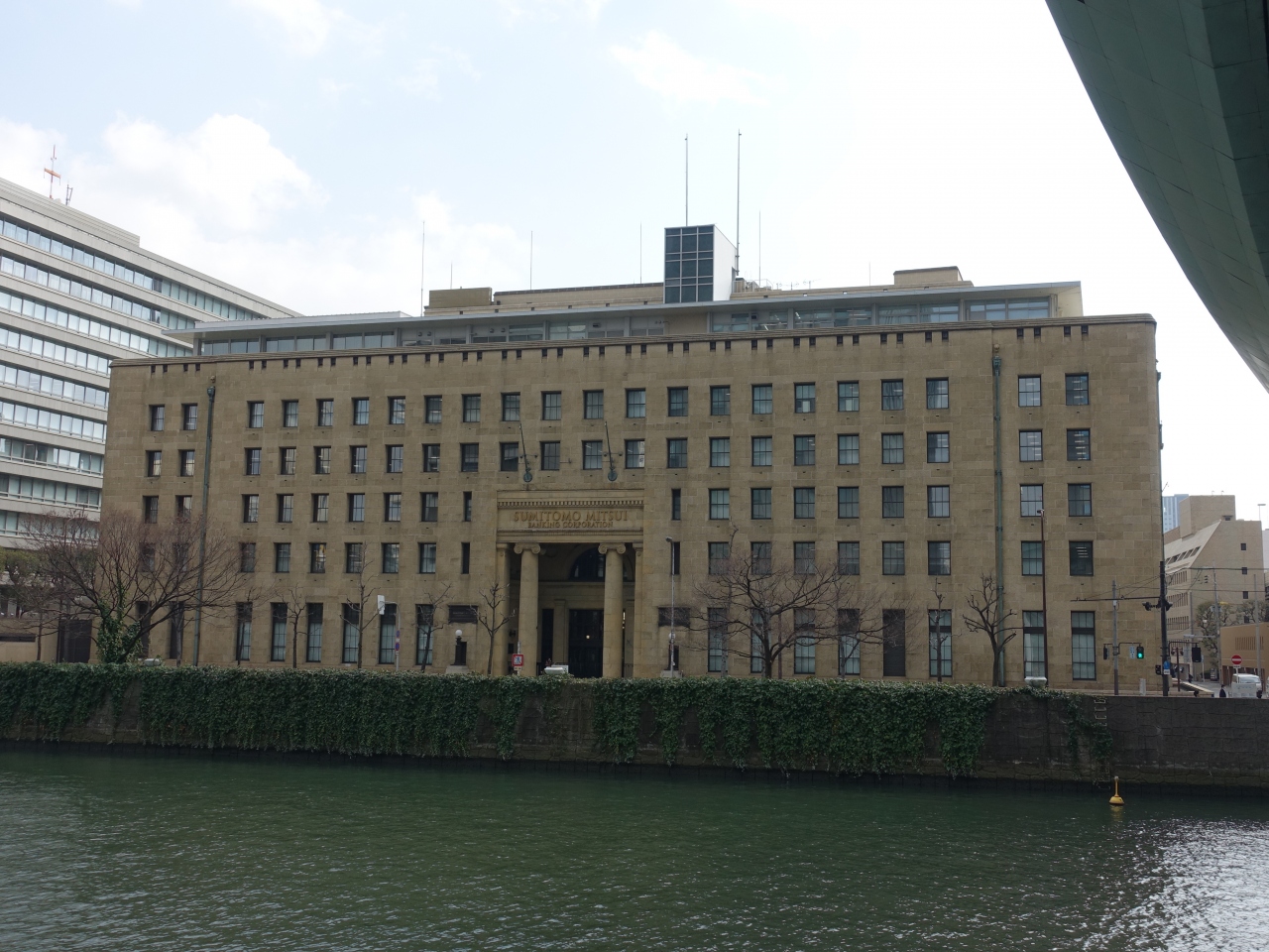 「三井住友銀行大阪本店」は、あまりに大きな建造物ゆえに、近くから撮影するとその全体像をおさめることが出来ません。今回、土佐堀川越しに撮影してみたところ、建物としての素晴らしさを実感出来る写真が撮れました。シンプルながら美しく、威風堂々とした素晴らしい建物です。