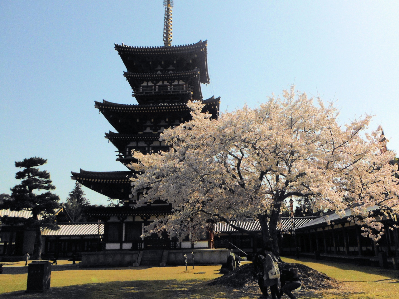 私が行った時は桜の開花直後ということもあり、1本だけ植えられているソメイヨシノの裏手に西塔が入る構図の写真を収めることが出来ました。