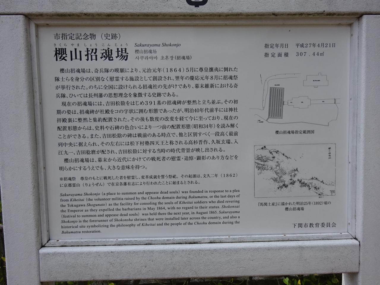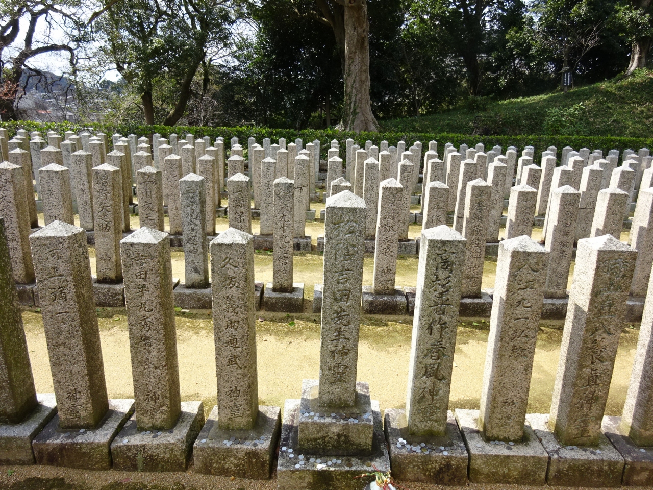 地元の高杉晋作の発議により、殉国の志士の神霊を祀る招魂場を築くことになり、ここが選ばれ、偉大な指導者、吉田松陰から奇兵隊の名もない者にいたるまで等しく祀られていました。
