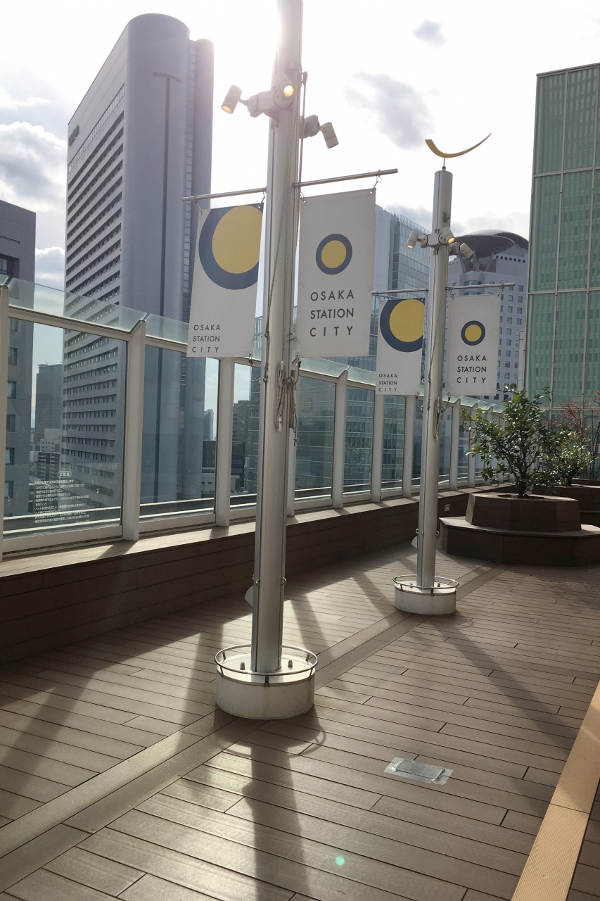JR大阪駅ビルの中にある大丸。この上層階に太陽の広場があるのですが、以前あったカフェが撤退しているので、机や椅子などはそのままなので、なかなか快適な場所になっています。確かにあまり人はいませんが、大阪駅周辺の高層ビルがよく見えるので、夜景もきれいです。
