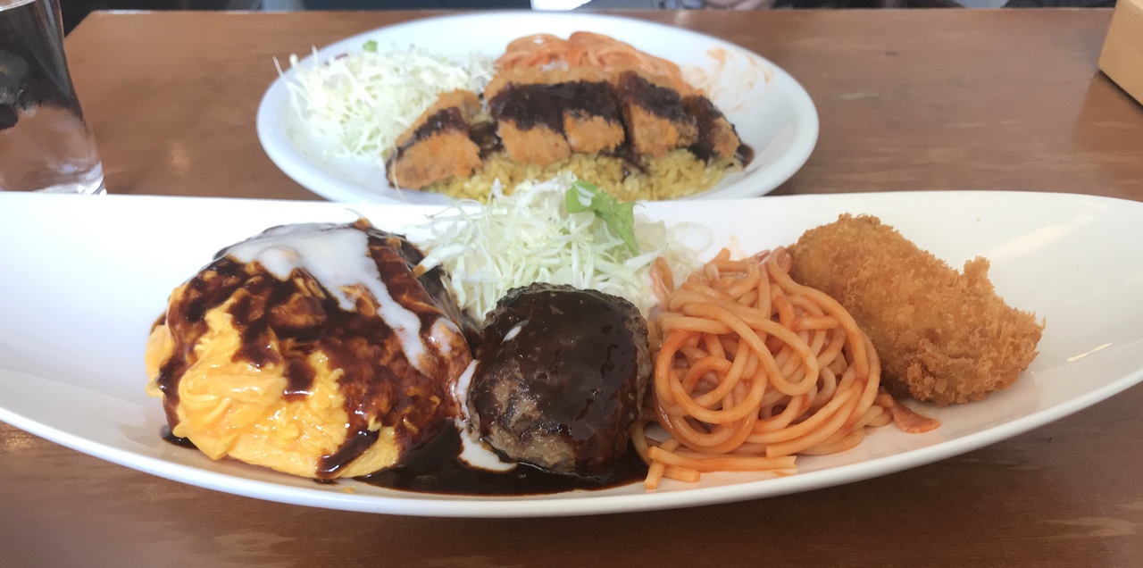 長崎名物トルコライスの店で、ミックストルコライスと定番のトルコライスを頼みました。ミックストルコライスはオムライスの中身はケチャップライス、トルコライスのとんかつの下のライスはドライカレーでした。どちらの遜色ない味でした。