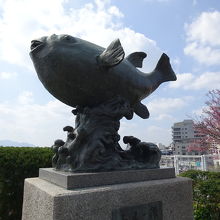 下関らしく、世界一と言われる巨大なふくの像もありました。