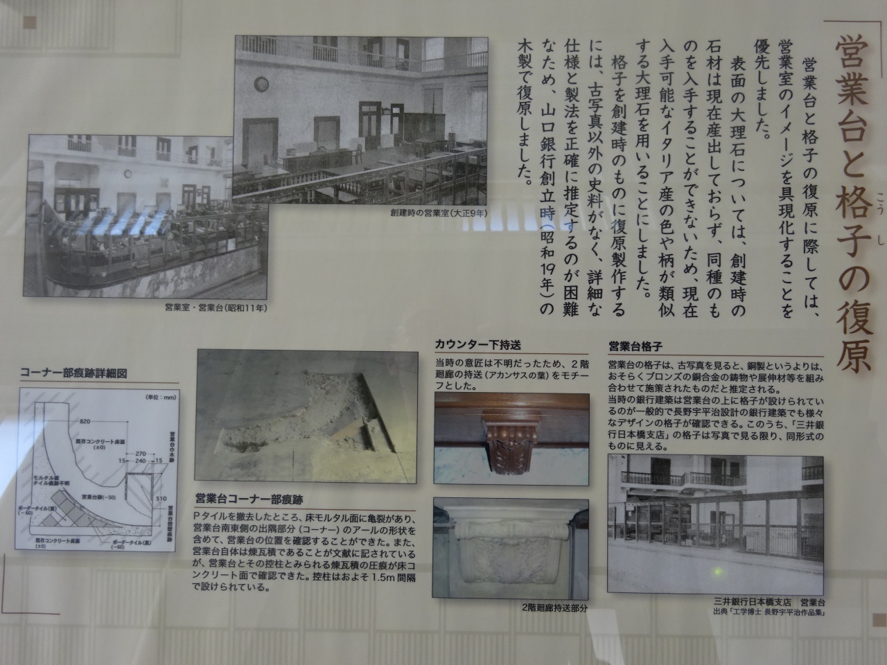たまたま通りかかったので、入ってみましたが、当時のカウンターが再現されていたり、イオニア式とコリント式を組み合わせた柱頭を持つ付け柱が施されていて、当時の銀行は威風堂々としていたことが実感できました。