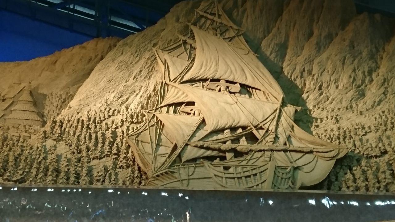 テーマが北欧でしたので、北欧の神々や風景・人々・お話し等を題材とした大型の彫刻がびっしりと並んでいました。海外から呼んだ彫刻家たちが苦労しながら彫刻を仕上げていく様子も映像で見ることができ、大変興味深かったです。