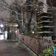 橋のたもとに石塔がありました