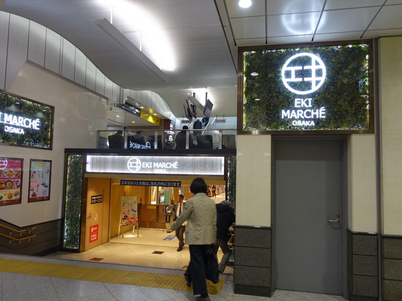 JR大阪駅の利用者が「エキマルシェ大阪」へ行くには、エキマルシェ大阪口という出口があり、分かりやすく大変便利です。改札口直結の抜群のロケーションに加え、店舗のバラエティ、店舗数も多く、充実した商業施設と言えます。