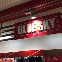 成田空港第二ターミナル 到着ロビーにあるJALの直営のブルースカイです。羽田空港とかと比べて コンビニ色が強いショップです。前にJALエービーシーというスーツケースなどの宅配のうけつけカウンターがあるので、そちらに預けて その後こちらでペットボトルなどを購入できるので便利です。
