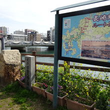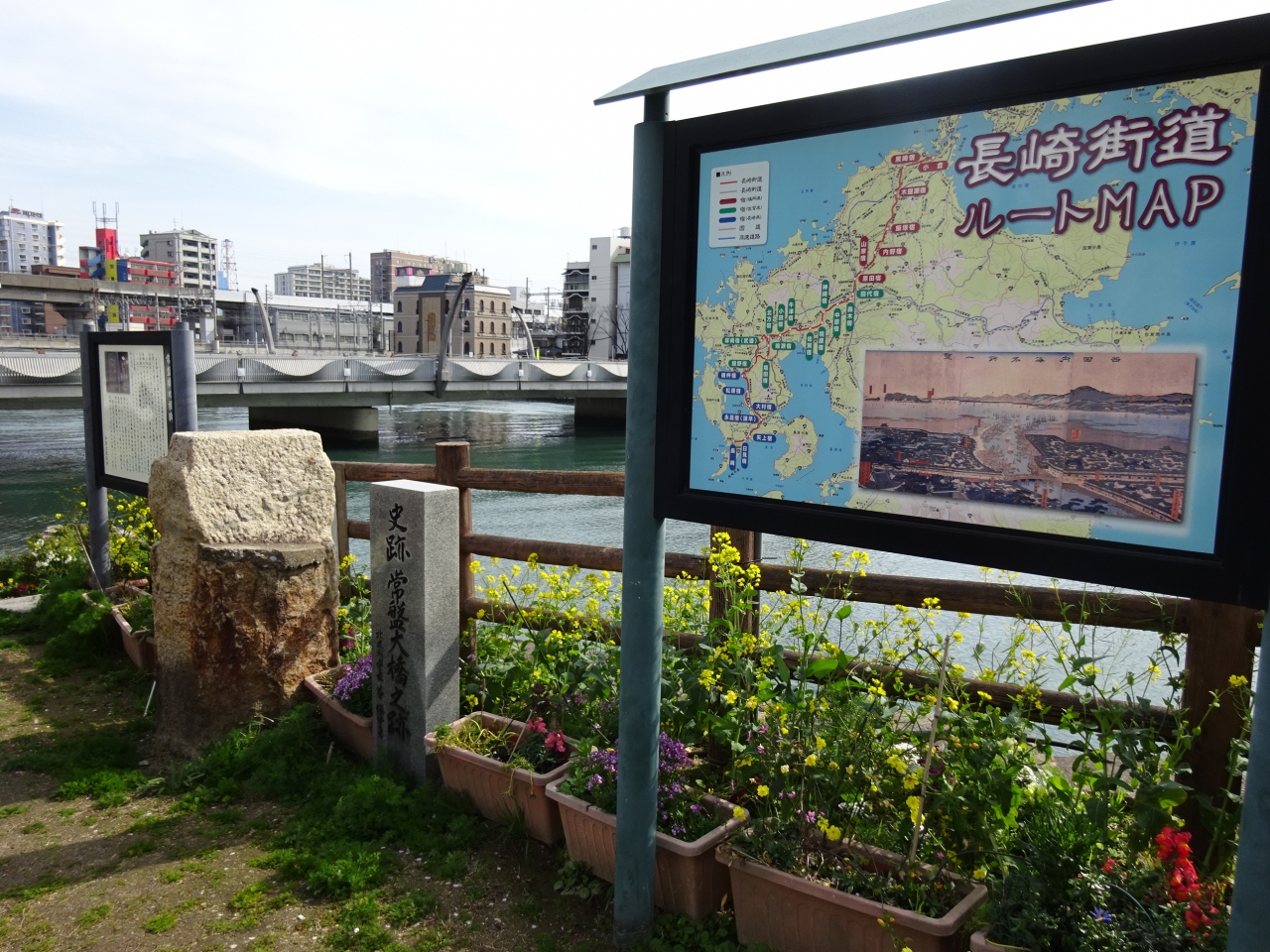 旧長崎街道の起点だった歴史性をコンセプトにして造られています。また、治水に対する英知の結晶である「木石橋」を表現しているようです。市内を流れる紫川にかけられています。近くには、記念の石碑の他、長崎街道の説明などもされていて、勉強になりました。