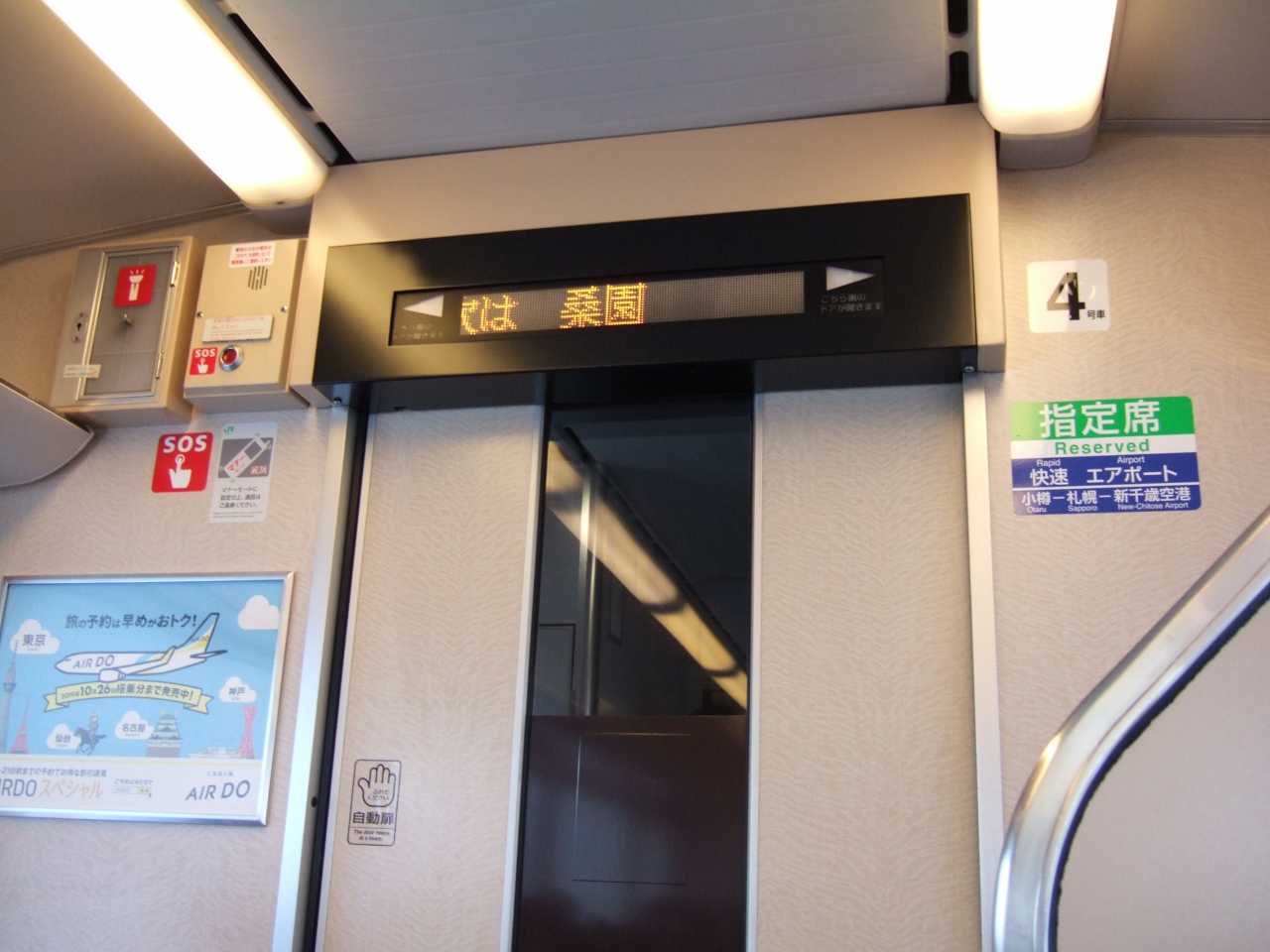 平日の昼間、札幌発の石狩当別行きに乗りました。6両編成でUシートを連結した列車でしたがガラガラで、Uシートにゆったり座ることができました。