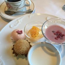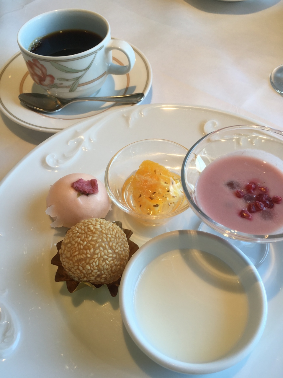 一品ずつの量は多くはないですが、女性にはその方がありがたく、最後のデザートはブュッフェになっているのがとても良かったです。