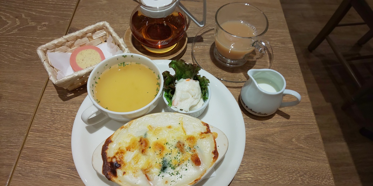 私はグラタンのセットを楽しみました。お店のクッキーも一枚選ぶことが出来て、嬉しかったです。