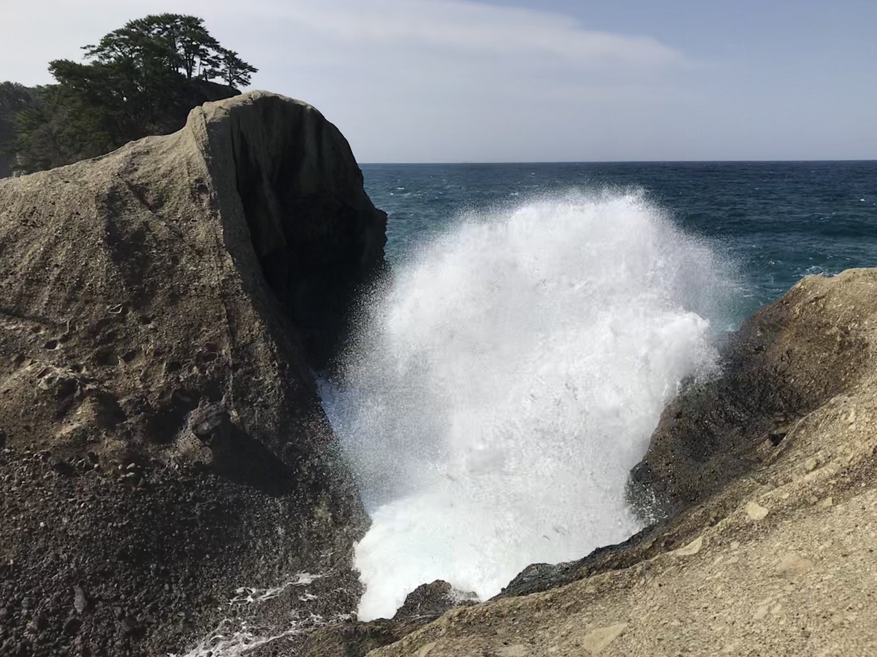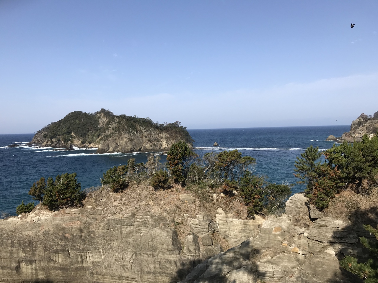 無料駐車場から、海岸におり全長300-500m観光遊歩道を回ってきました。干潮時時には、トンボロ現象が見えるとのことでしたが、ちょうど干潮時過ぎであった為、トンボロのとこだけ、白波が立っていました。訪問する際は、干潮時をチェックしていくのが良いと思います。