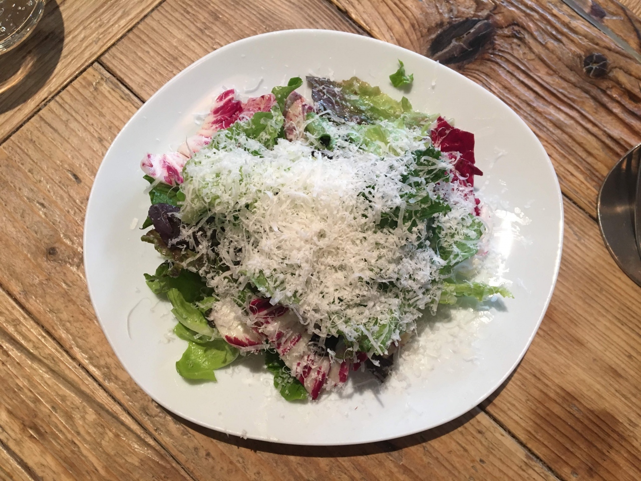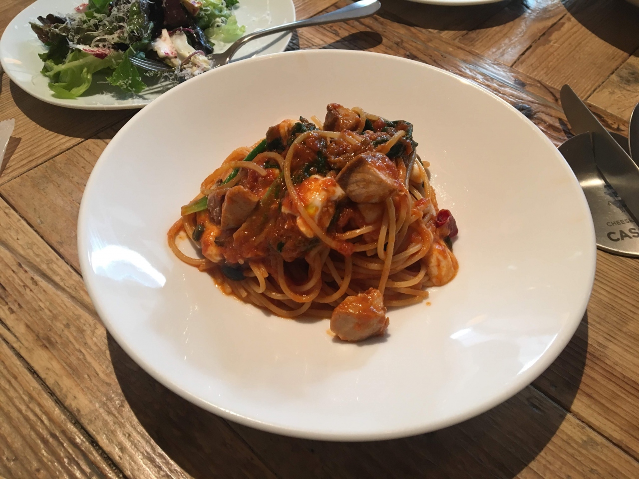 まず、テーブルのお水をガス入りがなしか選べるのがよいと思いました。ガス入りのお水が好きなのでうれしいです。メニューはサラダ、パスタ、デザートのランチメニューを選びました。名物のラクレットはランチメニューではなく、単品で別で頼む必要があるようです。サラダ、パスタはとくにチーズ専門店である必要を感じさせるメニューではないなと思いました。(まずいわけではないですが)デザートはリンゴ一切れとあるほうが残念な気分になるものでした。