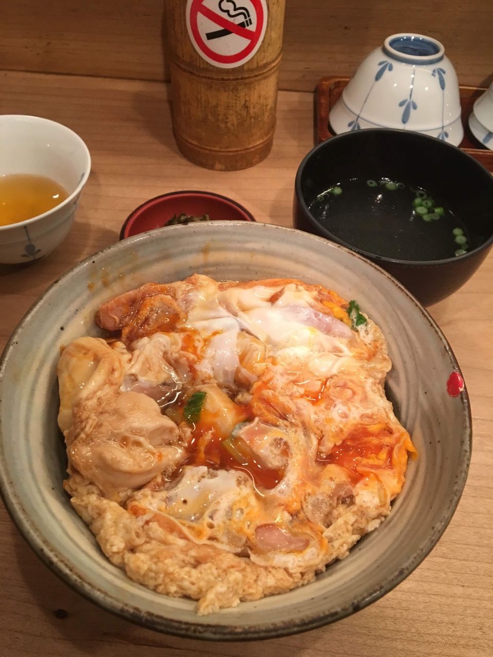 知人が大絶賛していていたので、親子丼を食べに行ってみました。12時前に行きましたが、運よくカウンターの1席が空いていました。入るとすぐにメニューを聞かれます。人気店ならではですね。限定20食の「特上親子丼」が残っていたのでそちらをお願いしました。カウンターなので作っているところが見え、まち時間も退屈しません。特上親子丼はきらきら輝くたまごとぷりぷりの鶏肉がおいしいかったです。実は鶏肉があまり好きではないのですが、こちらはおいしいと思いました。ボリュームが多く、普通なら残してしまう量だったのですが、おいしかったので残さず食べました。(みなさん黙々と親子丼に向かいあい、残せるような雰囲気でもなく…)