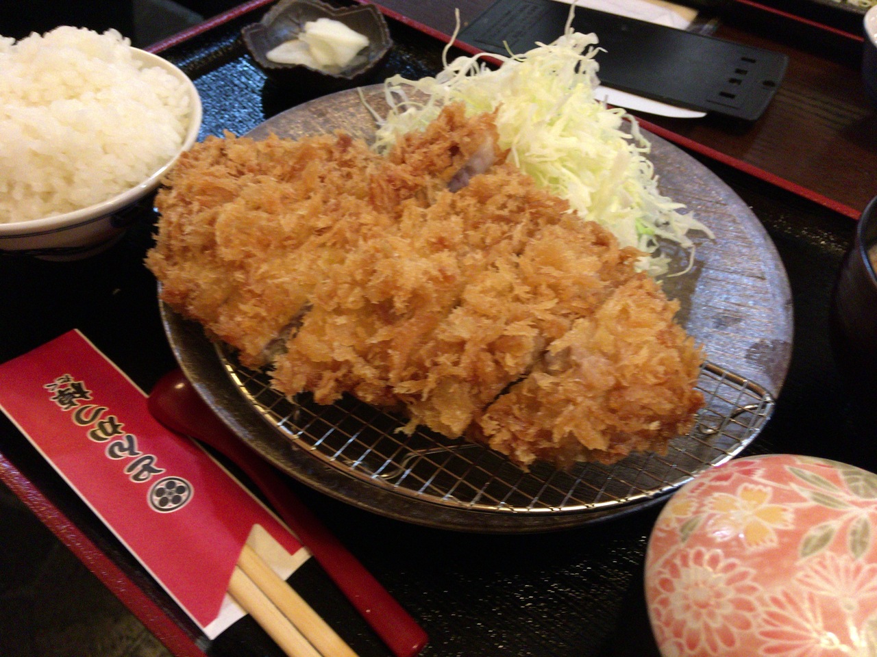 とんかつのお肉は肉厚があって美味しいです。私たちの隣の人は大阪からわざわざ食べに来たと言っていました。私たちが帰る直前の午後7時半くらいには、肉切れの看板を出していたので、早めに食べに行くのがいいかと思います。