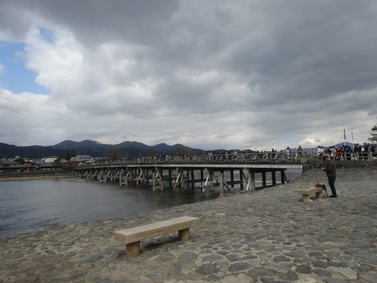 木造のとても雰囲気のある橋なのですがとにかく人が多くて橋の景観自体はあまり楽しめませんでした。橋が架かっている桂川とその後ろの嵐山の景色はとてもよかったです。