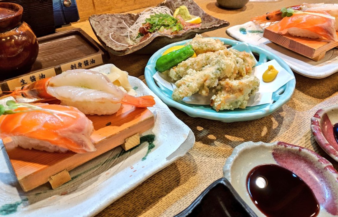 ランチ時間外に行きましたが単品でも握りは150円ほど。大分の郷土料理あり。とり天は青のり入りの衣が香りよく美味しい!りゅうきゅうはもっと厚切りが希望だっかな。あじフライもサクサクふあふあで美味しいです!