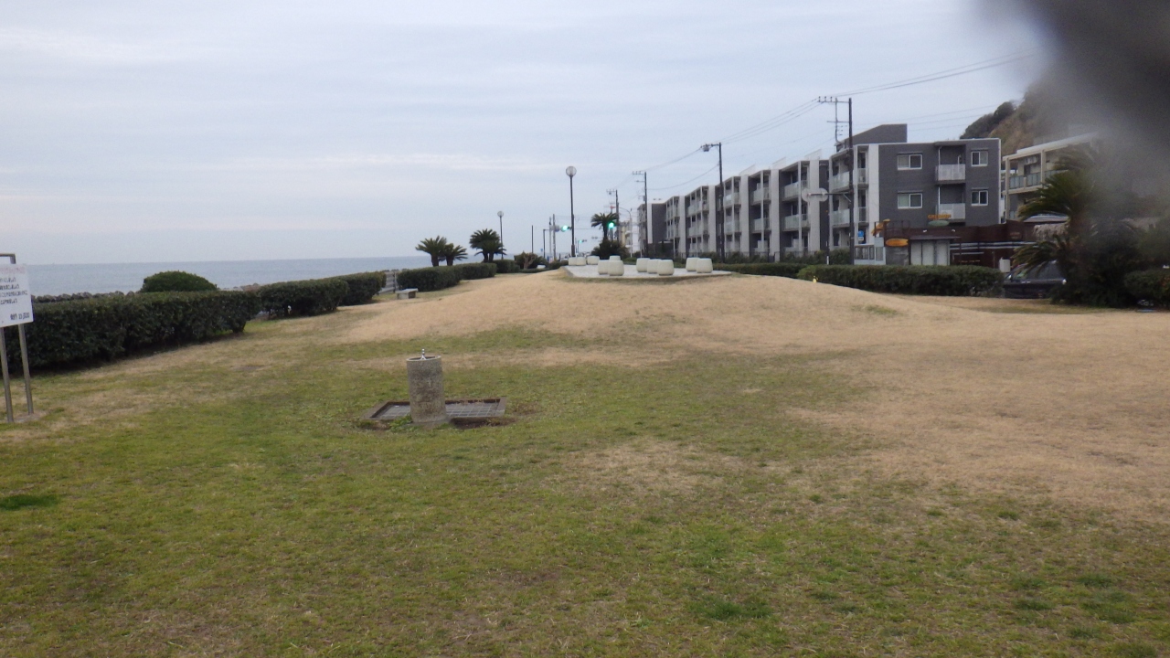 江ノ電長谷駅を出て南へ約450m、由比ヶ浜海岸と稲村ケ崎の間にある海浜公園です。