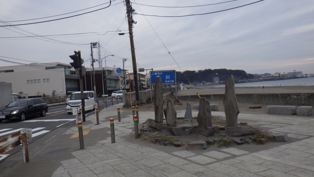 滑川交差点海岸側には、さくら貝の歌の石碑などの石碑などがあり海水浴場シーズン以外にも見どころがたくさんあるお勧めのスポットです。