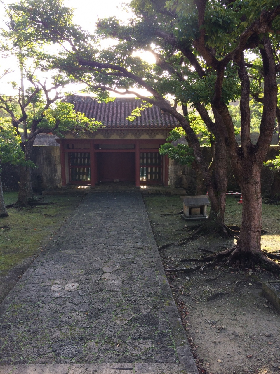 首里城駅から首里城まで徒歩で向かう際に、左手側に見えました。自由に見れるスポットです。質素な造りです。車いすなどは、雨で地面がぬかるんでいると危ないと思います。本当に、閑散としています。戦争で焼失したのを復元したけど、寂しいです。