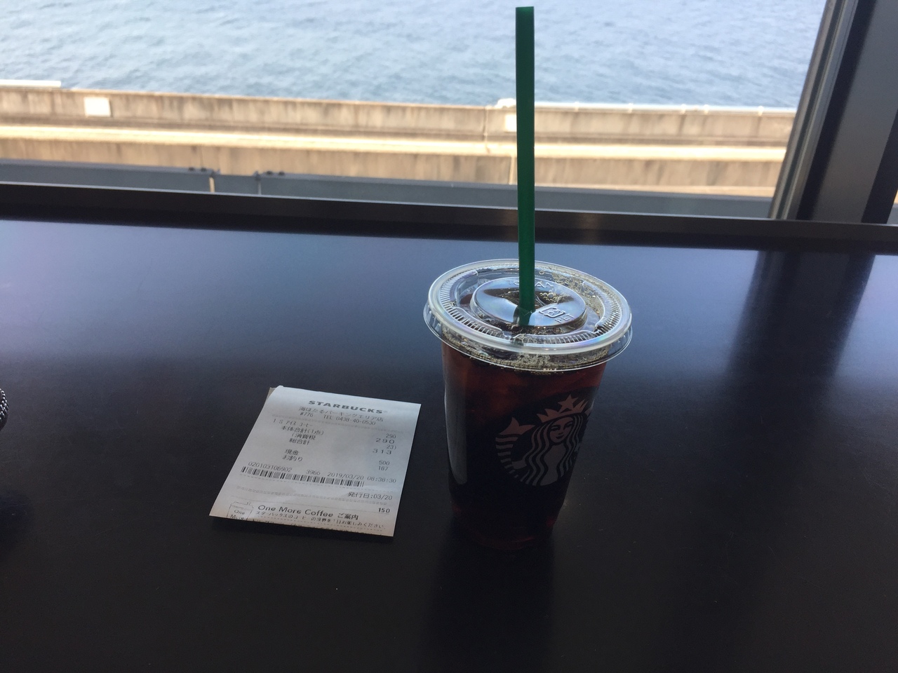 飲んだのはシンプルにアイスコーヒーショートサイズ!海を眺めながら休憩!