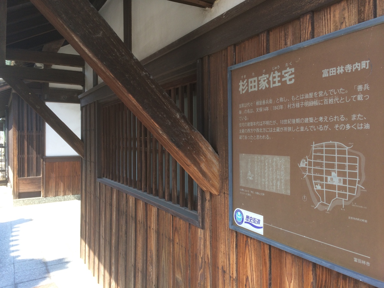 昔は油屋だったようで、土蔵のようなものが並んでいたので油の蔵だったのかもしれません。説明看板には、豊富秀吉の署名と書状が描かれていました。何軒か廻った後に、見た家なので、どの家も同じような家に見えてきた家でした。人の背丈ほどの位置に屋根を支えたような柱が何本かありました。