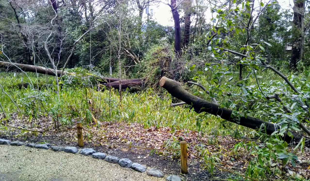 ところが今回の参拝で、昨年9月の台風21号により大切な樹木が250本も倒れ甚大な被害を受けたことを知りました。