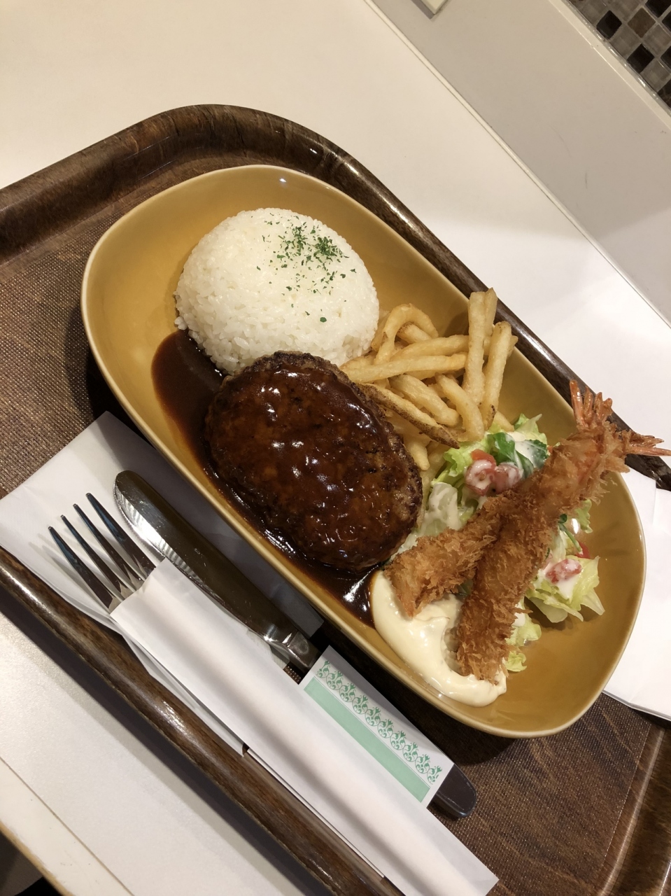 どれも美味しそうですが、ハンバーグとエビフライのセットにしました。