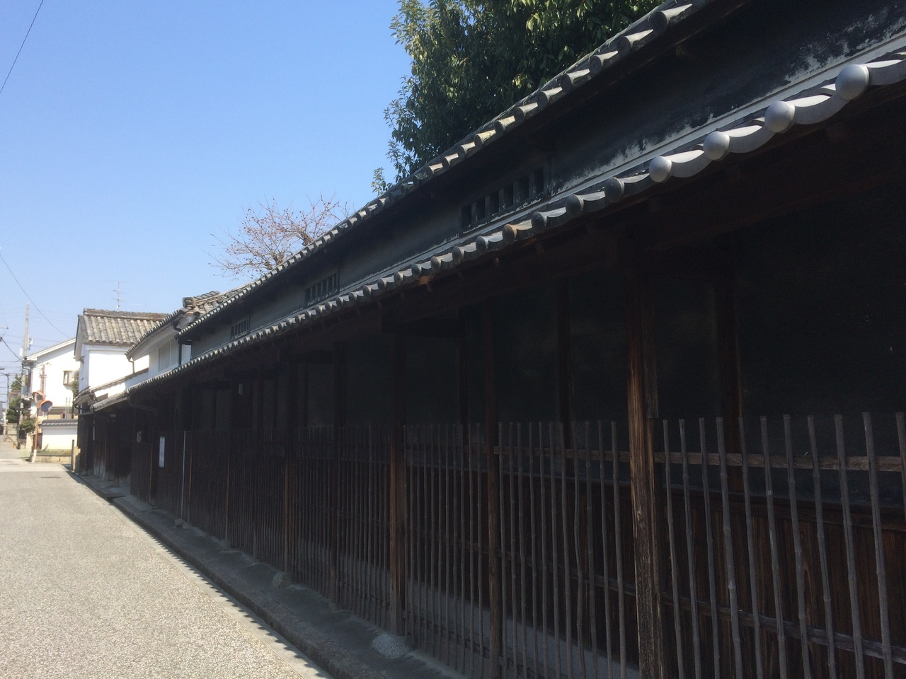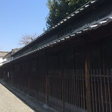 長い塀になっている家で、1700年代初めに造り酒屋になった家で、なるほど外観も酒屋の感じがし、説明看板にも徳利が2つ描かれ、吉田松陰の人物絵もありました。道との境は塀ではなく、一本づつの竹のようなもので出来たものがずらりとなんでいました。真向いにも別の家がり、道から両家を見ると良い景色でした。