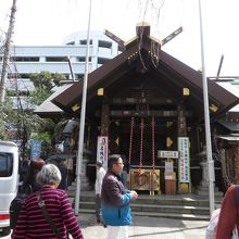 小さい神社ながらも築地の氏神様で いつも結構な人が来ています。
